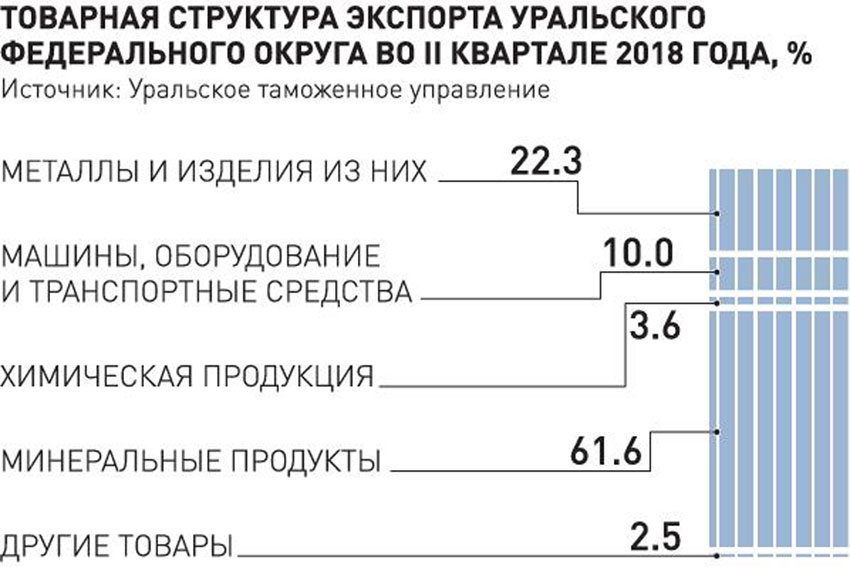 В структуре экспорта УрФО машиностроительная продукция занимает лишь 10 процентов и не может тягаться по объемам с поставками углеводородов из северных автономных округов. Однако для Свердловской, Челябинской и Курганской областей машиностроение традиционно остается одной из системообразующих отраслей. Пережив в 90-е - начале нулевых годов тяжелые времена, оно постепенно возрождается и отвоевывает позиции, в том числе и на внешнем рынке.