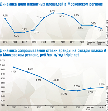 На рынке складов столицы спрос сохраняется на уровне 2018 года, ставшего рекордным за всю историю российского рынка, а по итогам года может его превзойти. При этом объемы нового ввода растут, но не столь быстрыми темпами. Доля свободных помещений составляет менее 4%, это самые низкие показатели с середины 2014 года. Ставки аренды возвращаются к уровню 2015-2016 гг., сообщает компания «Ориентир».