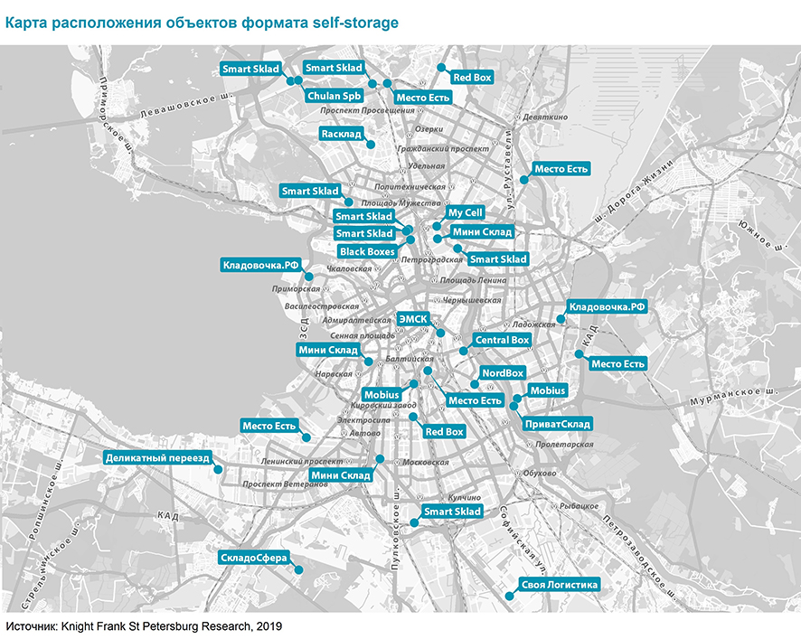 Ключевыми игроками рынка Петербурга являются сетевые операторы, использующие классическую модель self storage (50% операторов). «Особенностью рынка с точки зрения организации бизнеса является выход крупных логистических компаний, которые предлагают услуги индивидуального хранения в пакете своих предложений, не отталкиваясь от классической модели формата self storage, например, компания «Своя Логистика». В этом случае в качестве хранилища обычно выступает выделенная часть складских помещений», – говорит Светлана Московченко, руководитель отдела исследований Knight Frank St. Petersburg.