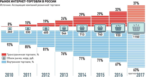 В материалах добавляется, что операторы сектора e-commerce сектора в объеме складского рынка России в настоящее время занимают не более 4% (1 млн кв.м), однако сегмент продолжает активно расти на фоне общей стагнации сферы розничной торговли. Темпы роста онлайн-розницы составляют порядка 25-30% в год.