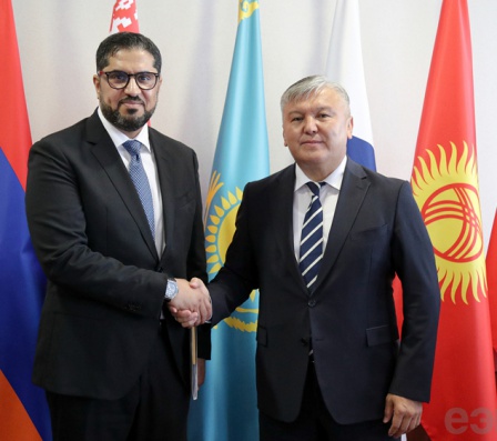 10 августа министр по энергетике и инфраструктуре Евразийской экономической комиссии Арзыбек Кожошев встретился с Чрезвычайным и Полномочным Послом Объединенных Арабских Эмиратов в Российской Федерации Мохаммадом Ахмад Аль-Джабером.
