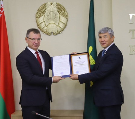 16 сентября состоялась двусторонняя встреча Члена Коллегии (Министра) по таможенному сотрудничеству Максата Мамытканова и Председателя Государственного таможенного комитета Республики Беларусь Владимира Орловского по актуальным вопросам таможенного регулирования.